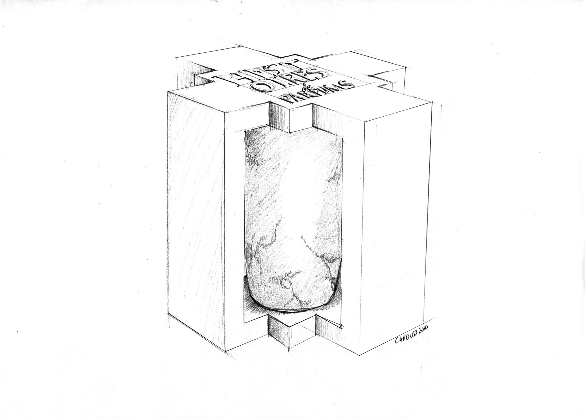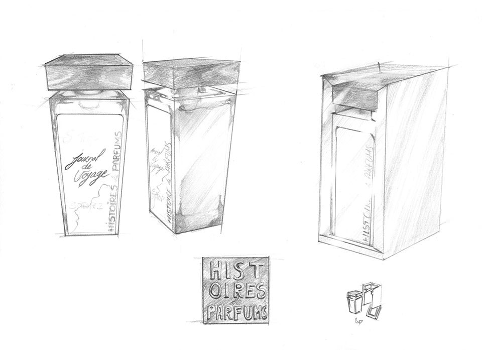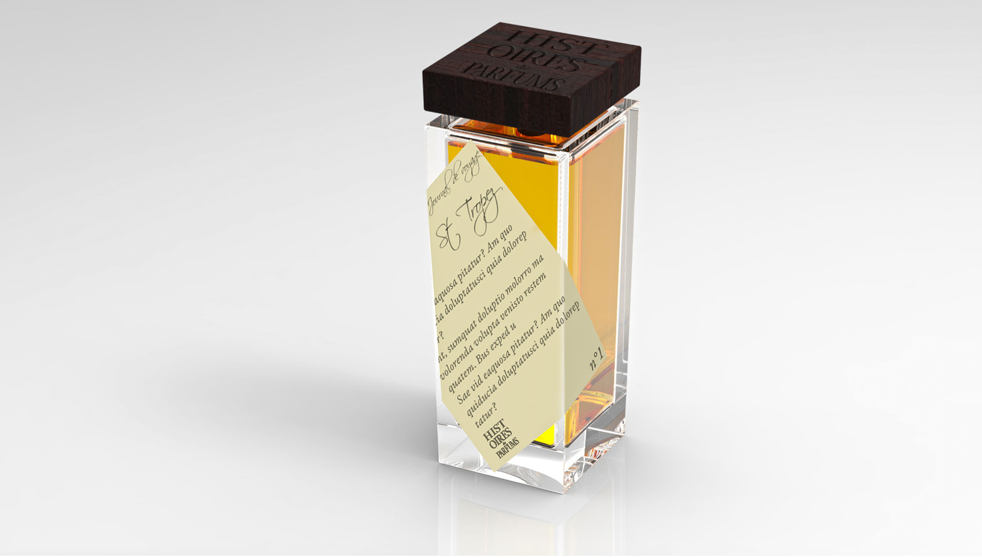 Création du packaging pour une bougie parfumée, un savon et une version 60 ml à pompe du flacon de parfums original.
