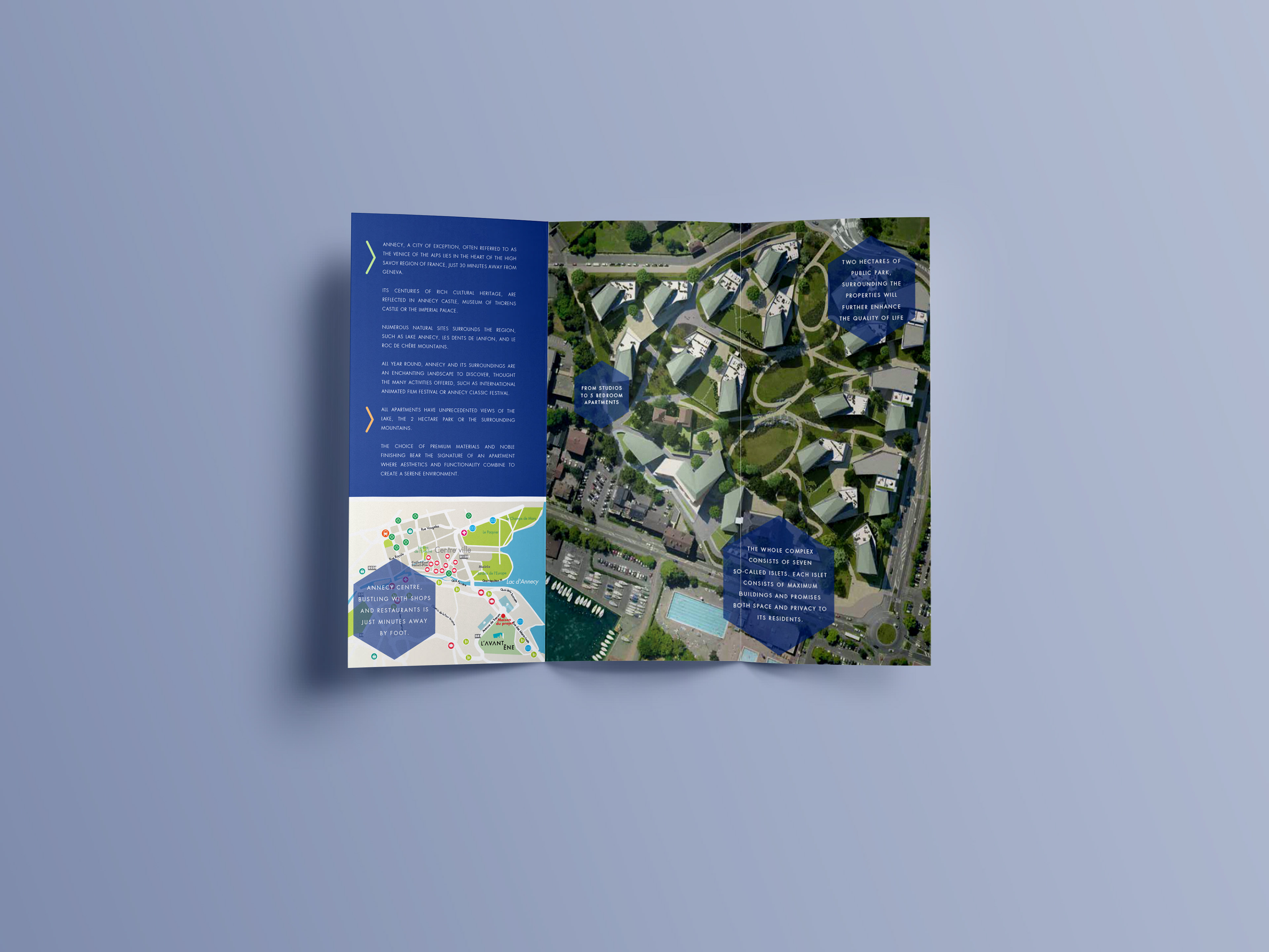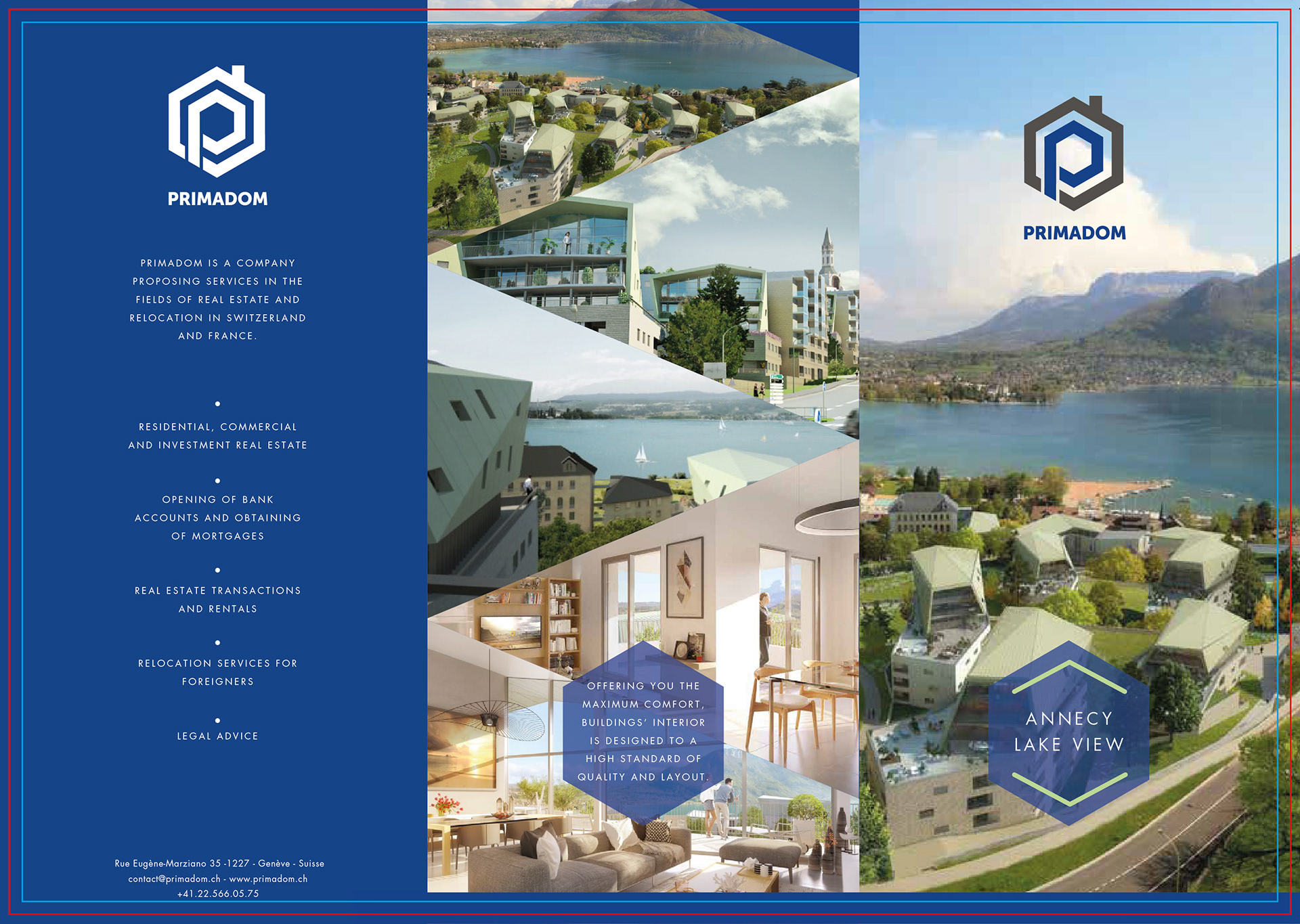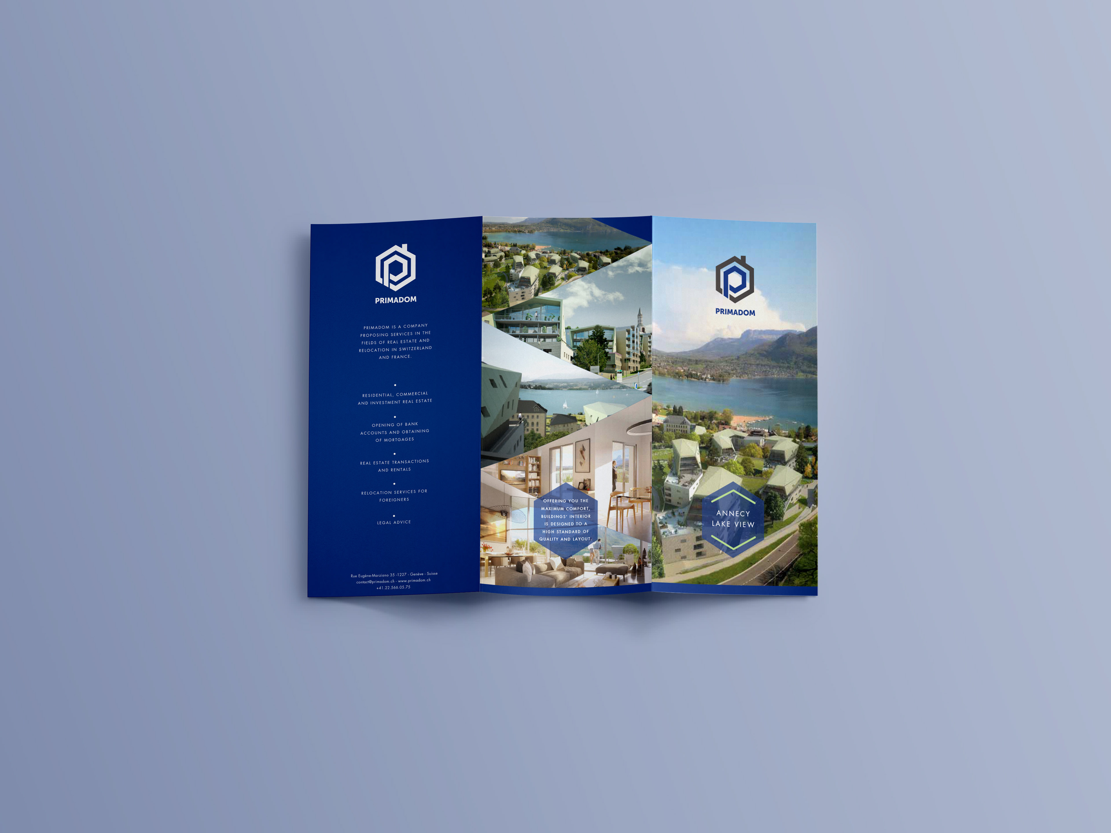 Création d'un dépliant pour la mise en avant d'un programme immobilier vendu par Primadom Sa