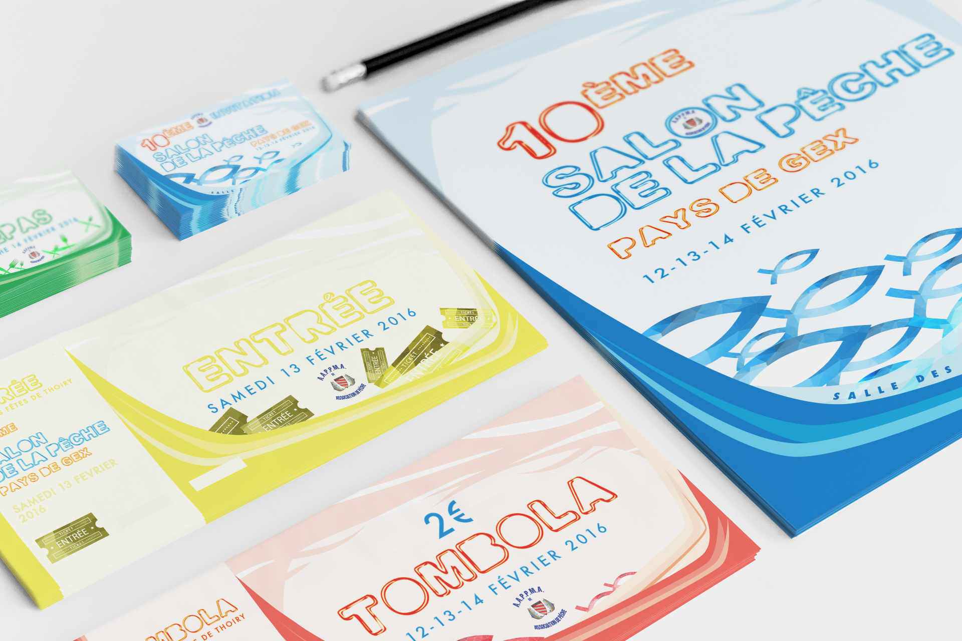 Affiche et élément print pour le 10ème salon de la pêche de Thoiry