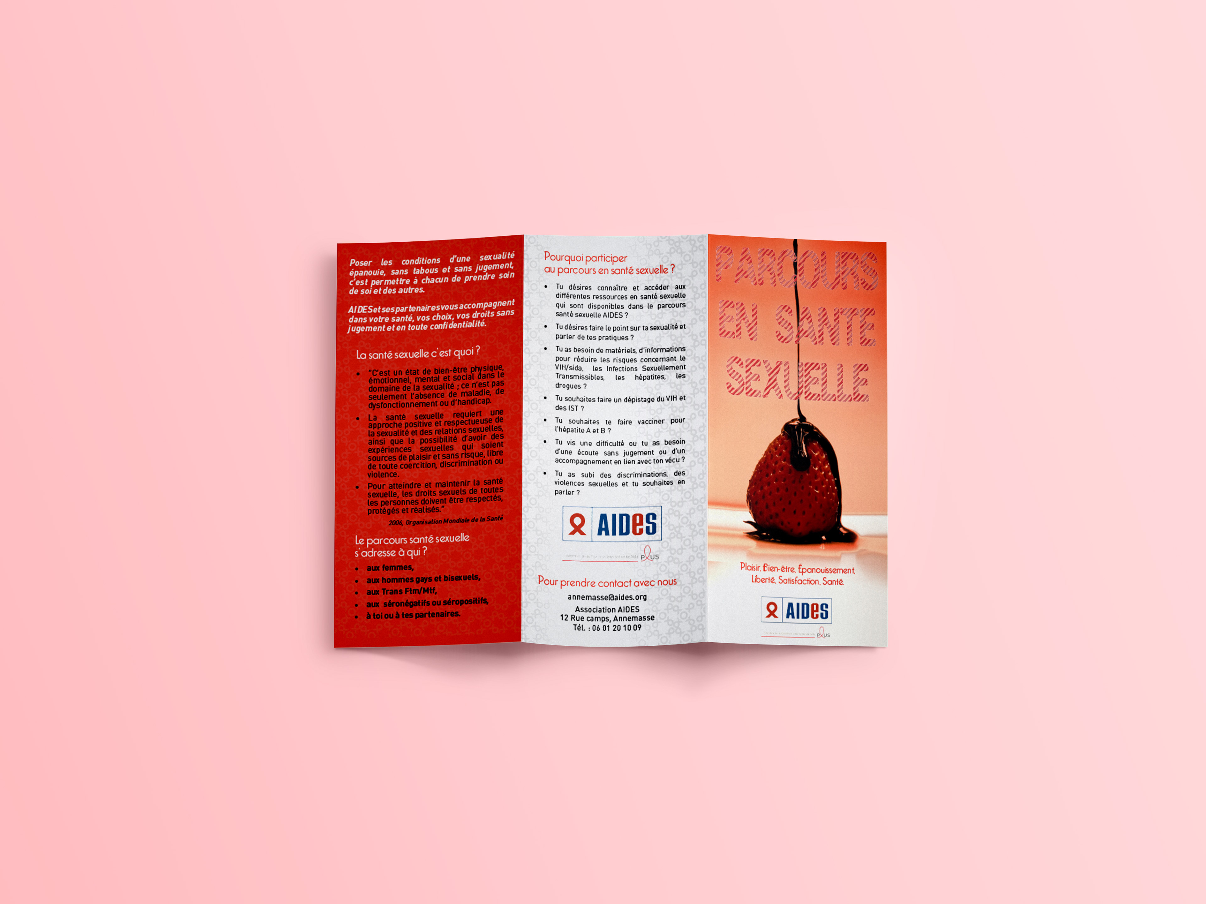 Leaflet de présentation du parcour de santé sexuel à destination du publique visé par AIDES